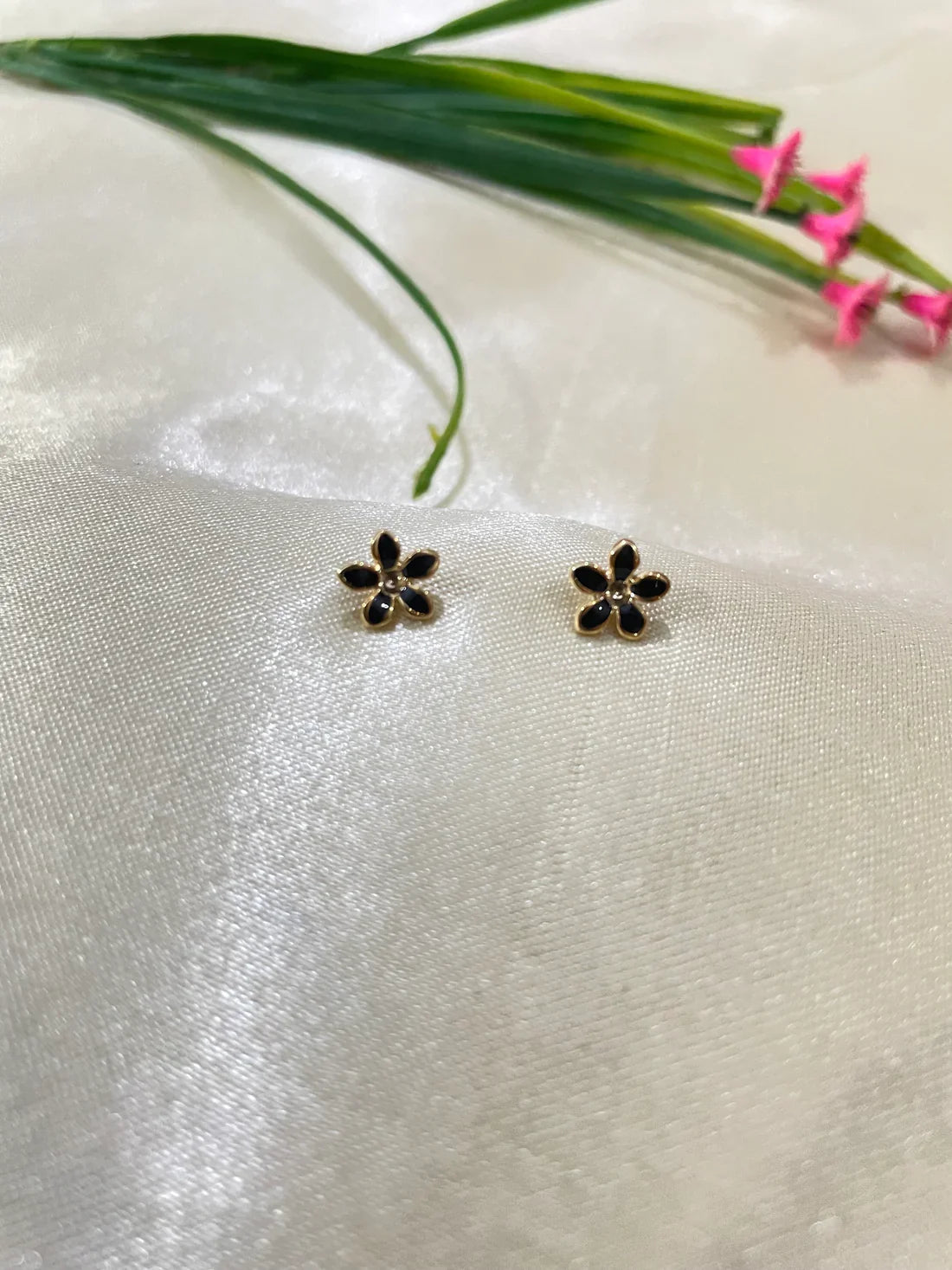 Black and Golden flower ear studs