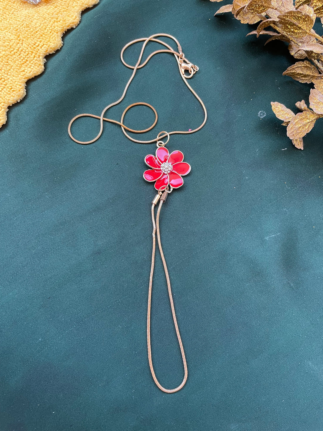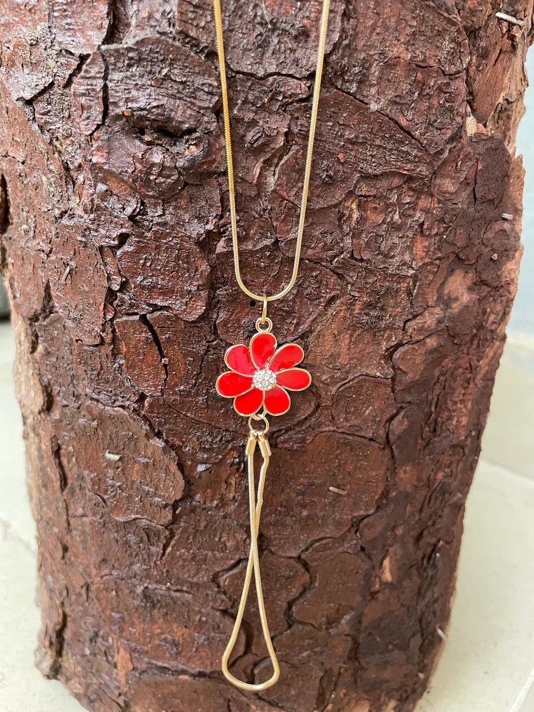 Vibrant floral pendant with golden chain, where modern design meets a fresh, positive Aura