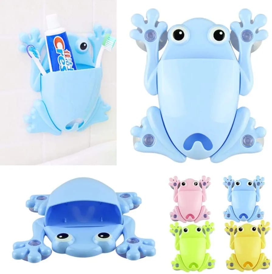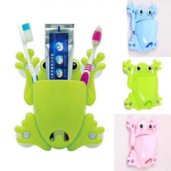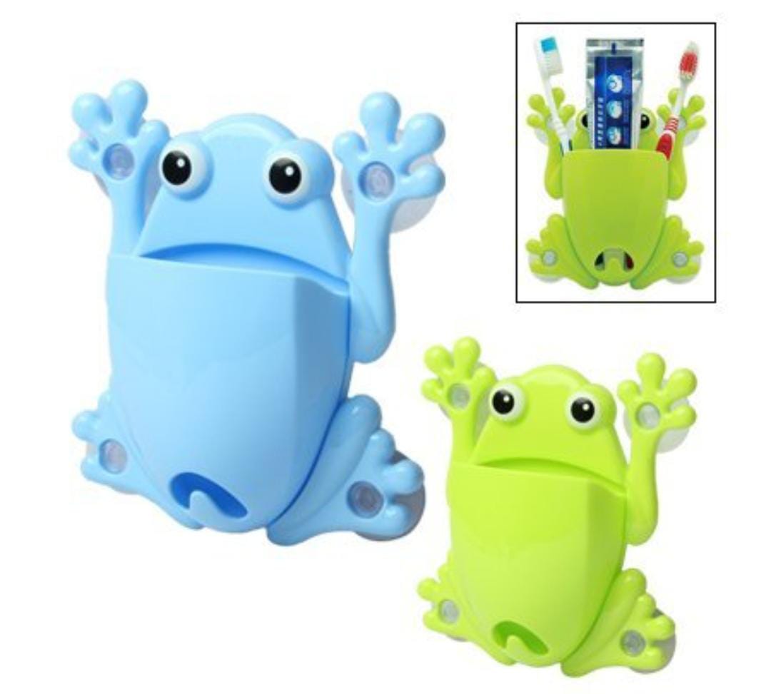 Frog Toothbrush Holder Powerful Sucker Punch Free Children Storage Rack Toothpaste Toothbrush Holder, Plastic Home Bathroom Organizer Tool Stand For Kids Makeup Tools Wall Stick Organizer Bathroom Accessories