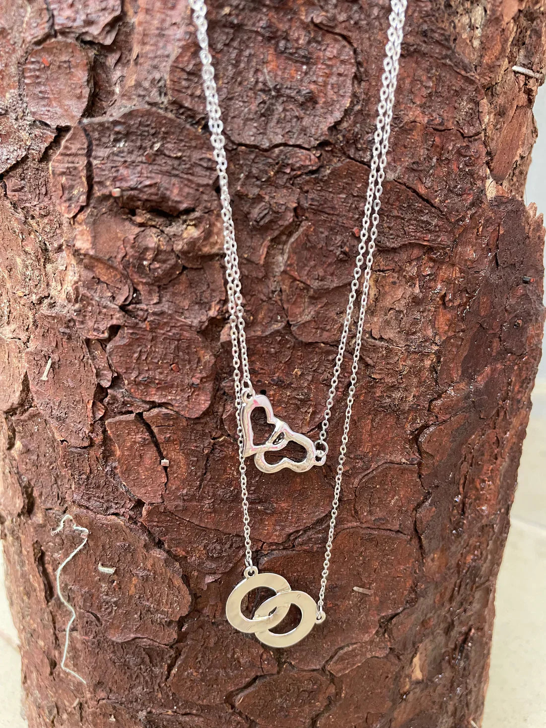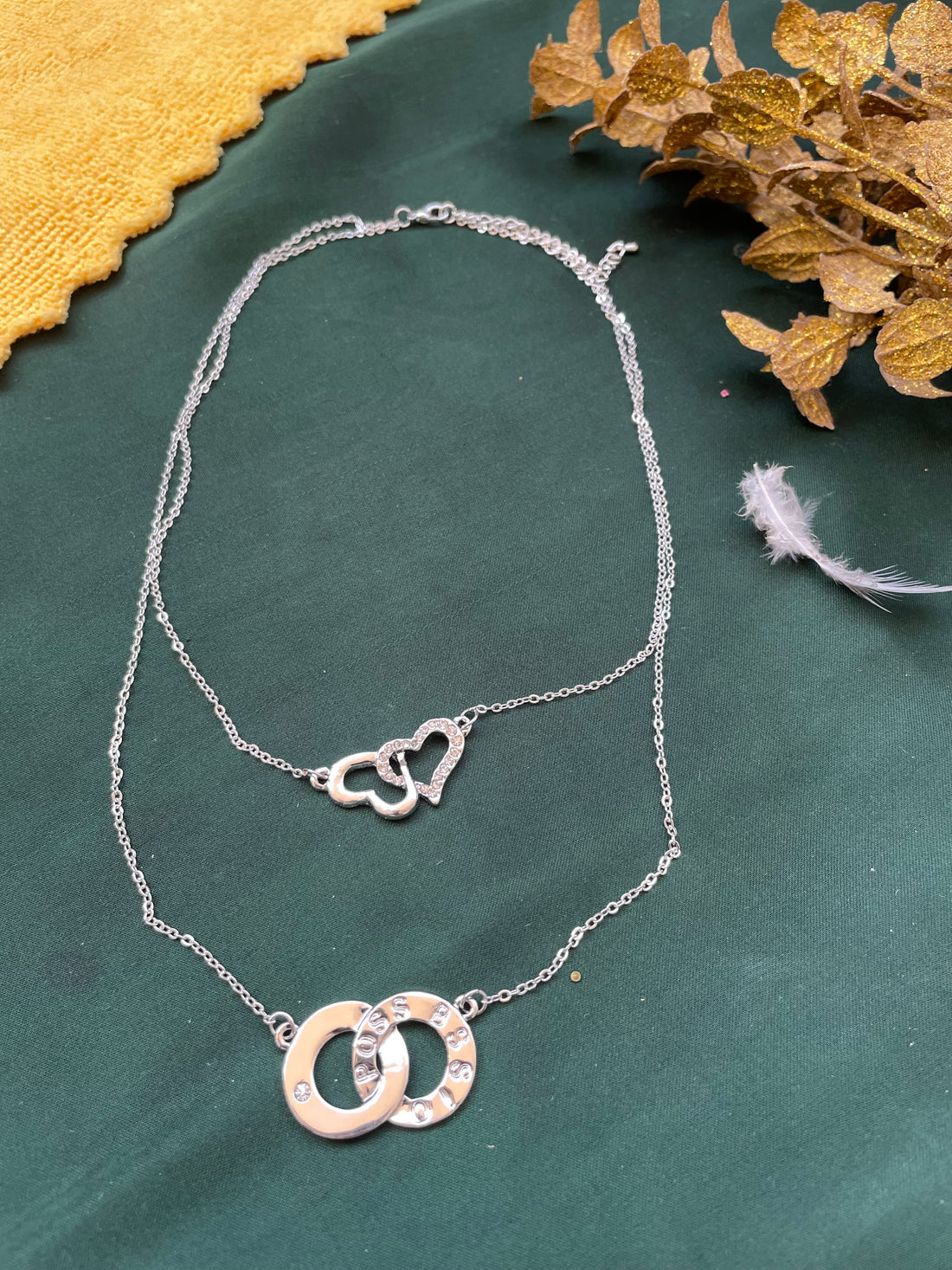 Sterling silver plated double heart two layers band pendant Necklace chain with clear stone. You vibe in confidence everywhere.Pink double heart pendant with silver plated chain