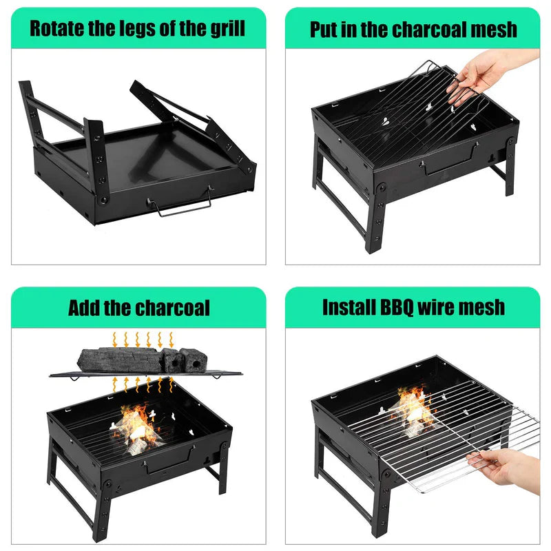 - This portable barbecue grill is small and foldable, easy to carry and store, you can enjoy delicious food anywhere and anytime.